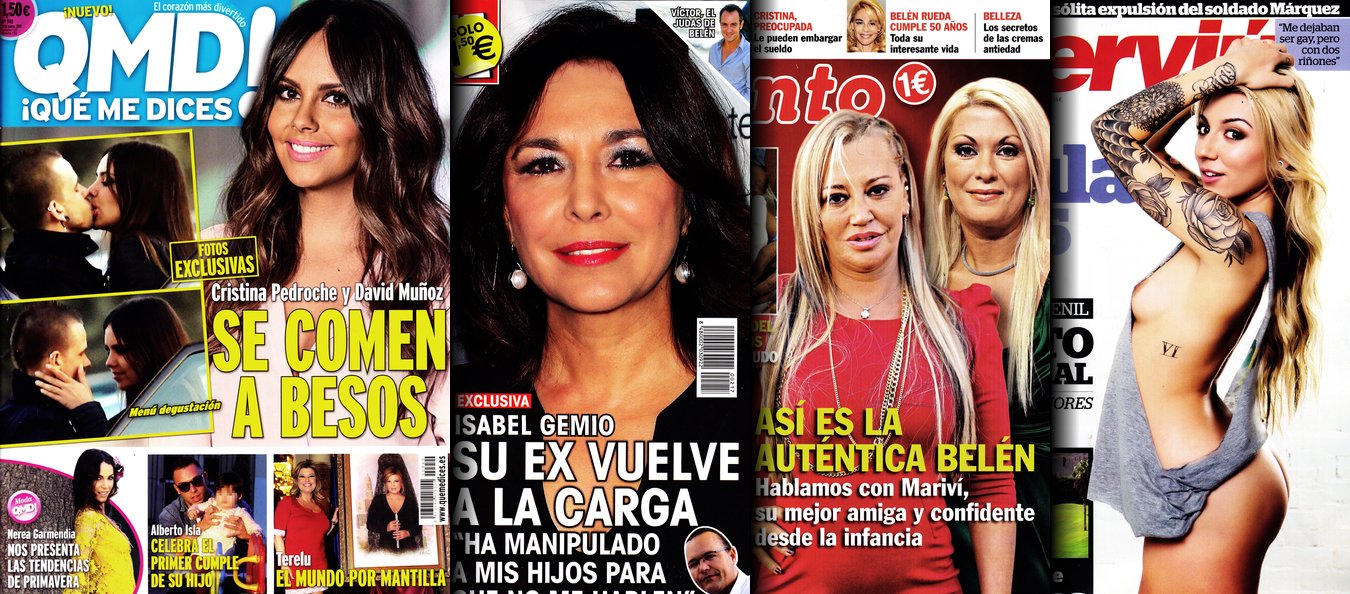 Portadas de las revistas QMD, Sálvame, Pronto e Interviú.