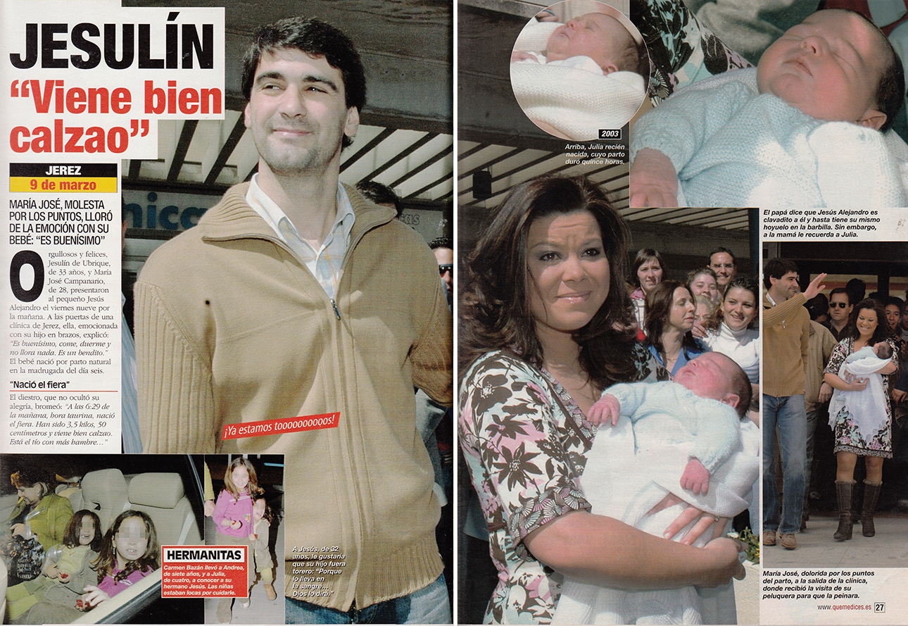 Acababa de nacer el primer hijo varón de Jesulín de Ubrique. En un alarde de testosterona mal entendida, el torero presumía a la puerta del hospital de la anatomía íntima del bebé.