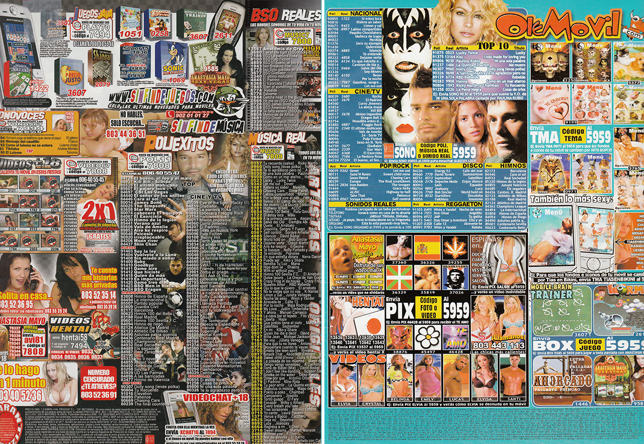 ¿Alguien recuerda los politonos? Fue la efímera fiebre del momento. Música, frases de los personajes del momento, juegos, escenas picantes… las páginas de publicidad de politonos fueron unas de las más prolíficas en las publicaciones de entonces.
