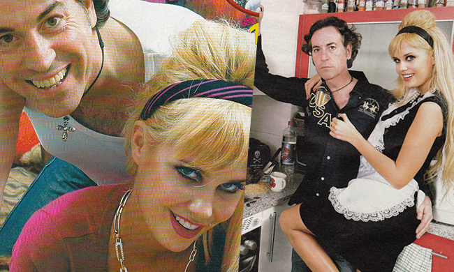 Vamos ya con el reportaje anunciado en portada, un ejercicio de buen mal gusto difícil de superar. No era sólo el reportaje de la pareja en casa, sino un posado lleno de elementos kitsch, como botes de vaselina, brics de Don Simón, The Economist, un litro de La Casera, figuras e santos… todo esto aparece en la foto.