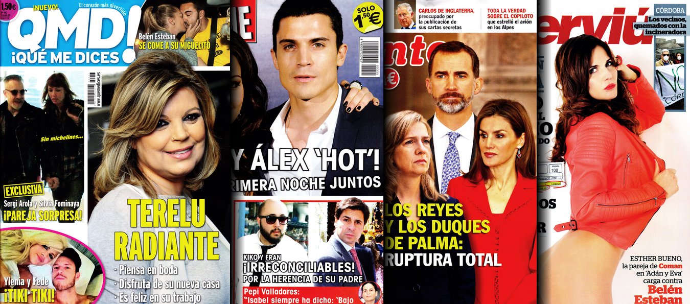 Portadas de las revistas QMD, Sálvame, Pronto e Interviú.