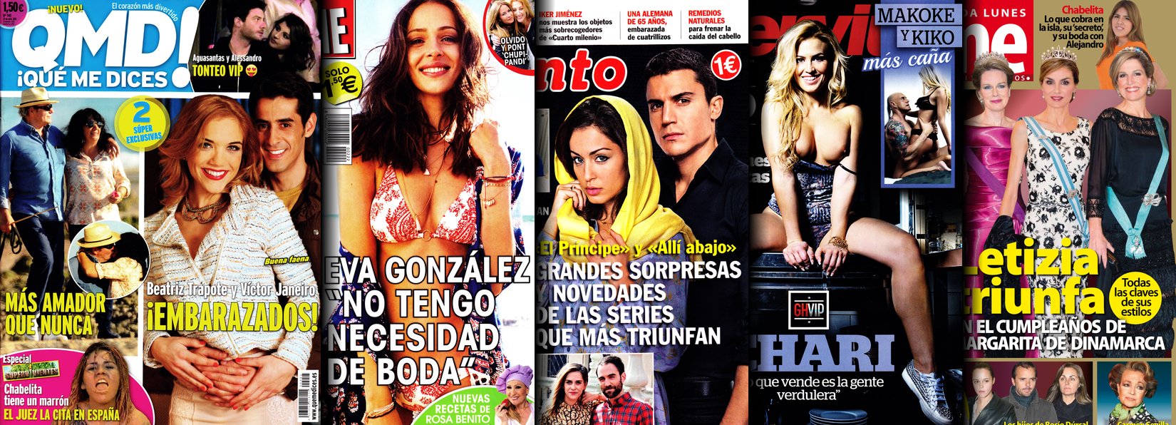 Portadas de las revistas QMD, Sálvame, Pronto, Interviú y Dime.