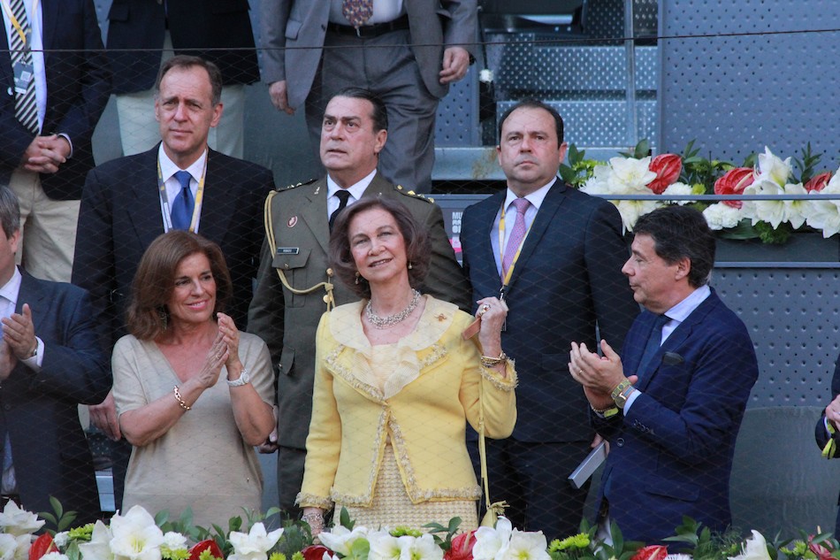 La reina Sofía, la alcaldesa Ana Botella y el presidente de la Comunidad de Madrid, Ignacio González, aplauden durante el partido.