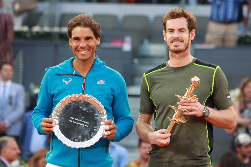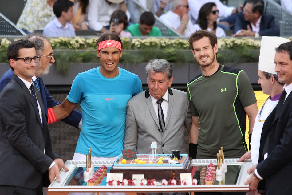 Todo ello pese a que la victoria fue clara para el británico Andy Murray. En la imagen, con el extenista Manolo Santana.