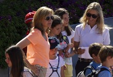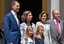 Se pudo ver al rey emérito serio y algo distante tanto a la entrada como a la salida de la parroquia. El resto de la familia mostró su mejor sonrisa.