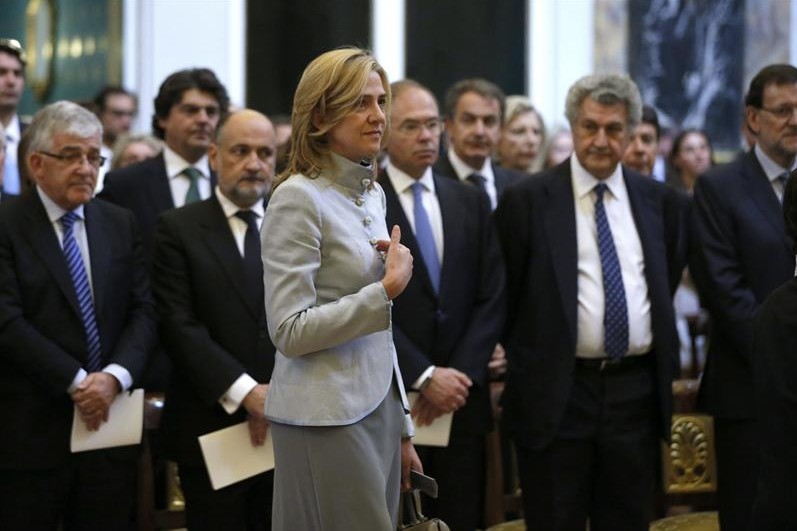 La infanta Cristina, 20 junio de 2013, en su primera acto junto a la Familia Real desde otoño de 2011, en la capilla del Palacio Real donde se celebró la misa por Don Juan. Sus apariciones públicas ya se habían reducido drásticamente.