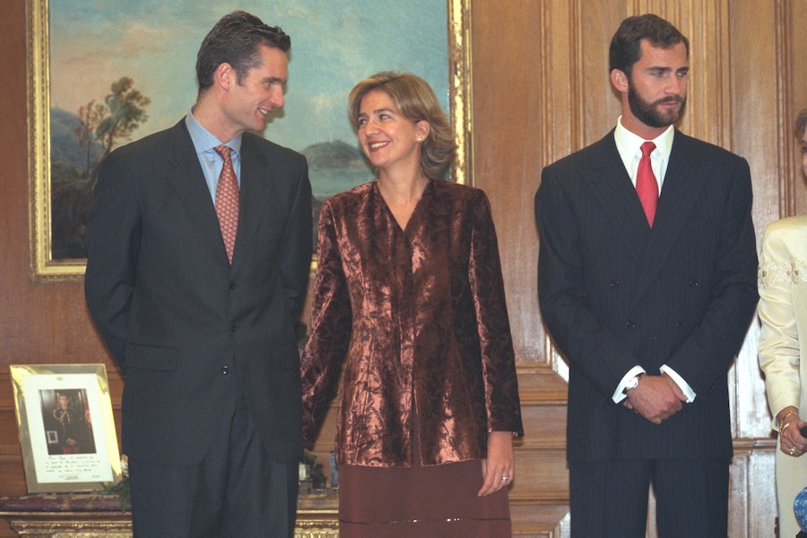 Felipe y su hermana junto a Urdangarín, en el año 1998. La Infanta Cristina poseía desde hacía un año el título de duquesa de Palma, otorgado por su padre con motivo de su enlace matrimonial con Iñaki Urdangarin quien, en su calidad de consorte, también estaba capacitado para usar el título de duque de Palma.