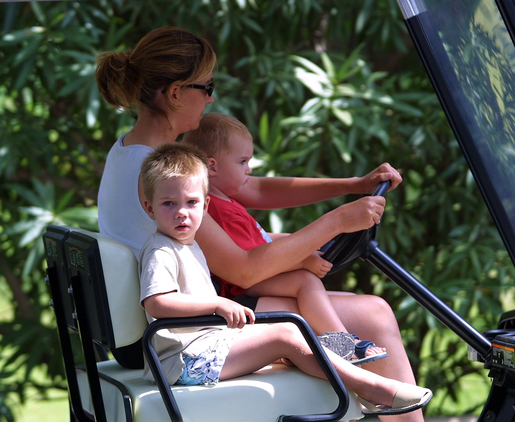 Conduciendo un carrito de golf en los jardines de Marivent junto a dos de sus hijos, en el año 2002. Todavía quedaban años para la tormenta judicial del caso Nóos.