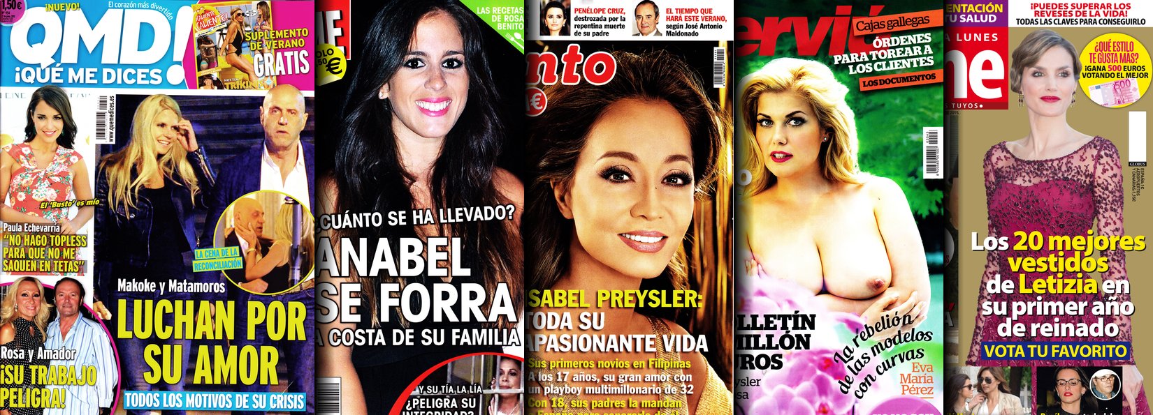 Portadas de las revistas QMD, Sálvame, Pronto, Interviú y Dime.