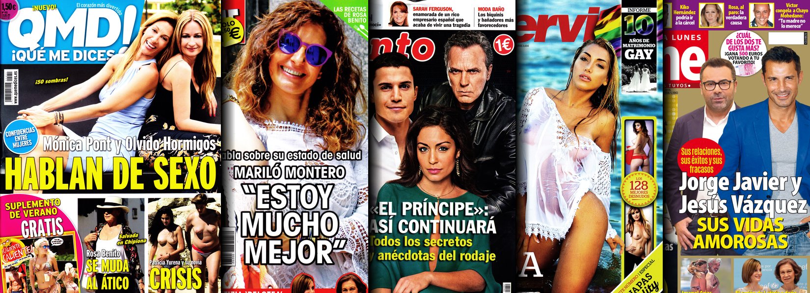 Portadas de las revistas QMD, Sálvame, Pronto, Interviú y Dime.