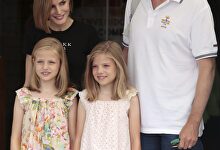 Las niñas han aparecido con gafas de sol y han subido al Aifos donde han seguido atentas las explicaciones de su padre Felipe VI.