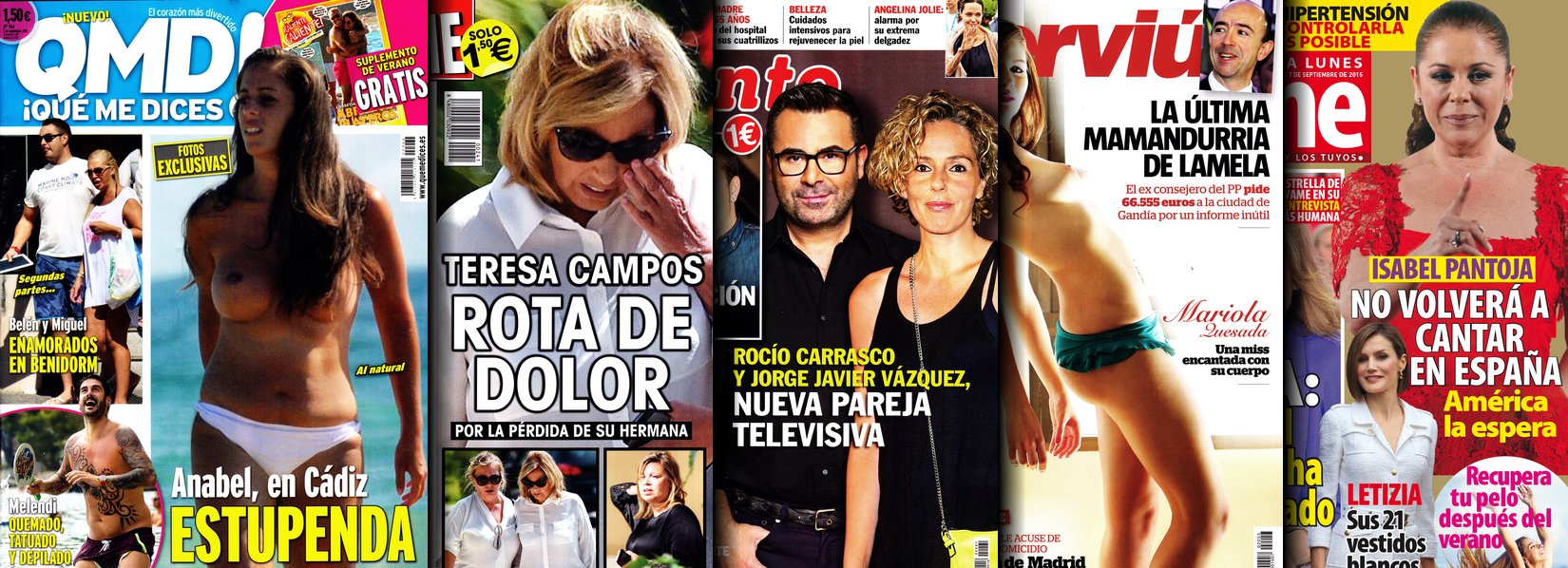 Portadas de las revistas QMD, Sálvame, Pronto e Interviú.