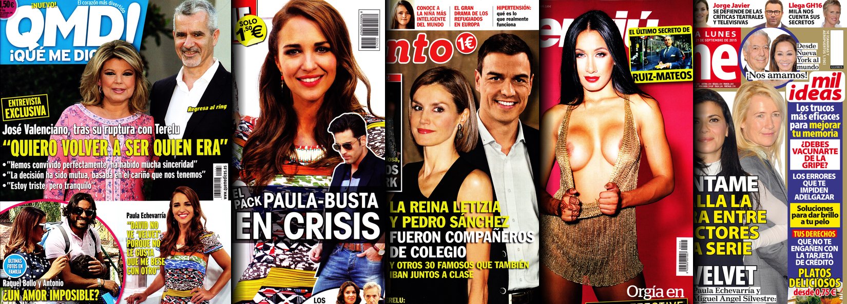 Portadas de las revistas QMD, Sálvame, Pronto, Interviú y Dime.
