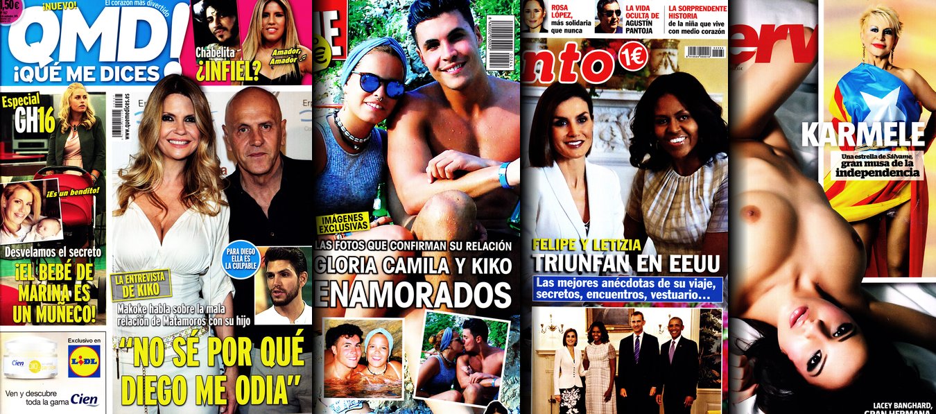 Portadas de las revistas QMD, Sálvame, Pronto e Interviú.