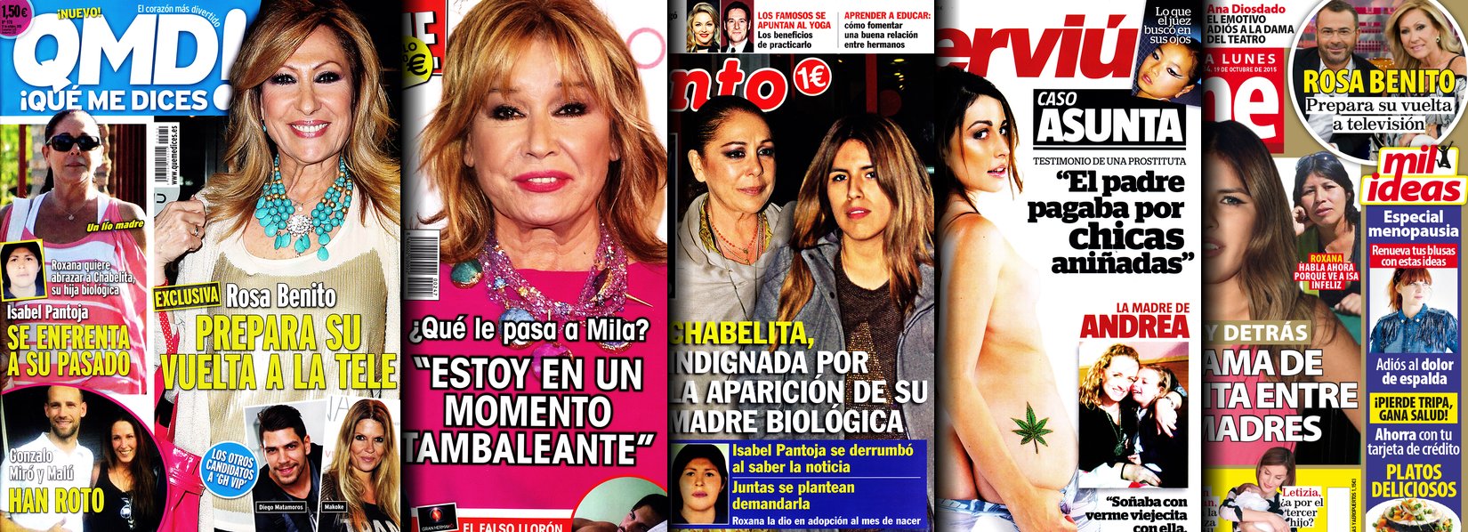 Portadas de las revistas QMD, Sálvame, Pronto, Interviú y Dime.