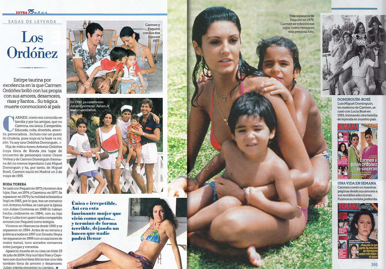 Lo fantástico de estas sagas que la revista considera de leyenda es que siguen alimentando páginas y programas del corazón. Los Ordóñez-Rivera (y podría añadir Dominguín) llevan llenando espacios desde que el torero patriarca Antonio Ordoñez se casó. Sus hijas Belén, y sobre todo Carmina, dieron continuidad a la leyenda, ahora representada por sus hijos y hasta por sus nietas. Teniendo en cuenta que las ramas de este árbol genealógico llegan a la Casa de Alba, al mundo Pantoja y hasta a los Bosé, es una fuente inagotable de noticias.