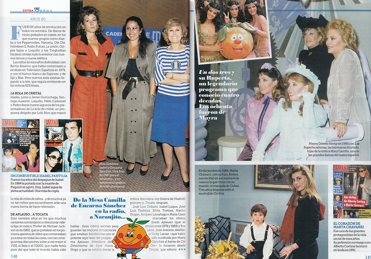 SEMANA revisa la década de los 80 y recoge el momento de eclosión musical/cultural/juvenil. Miguel Bosé, Mecano, Marta Sánchez, La Bola de Cristal y yo misma servimos como recordatorio de lo que la revista denomina "un soplo de aire fresco que vino para cambiarlo todo".