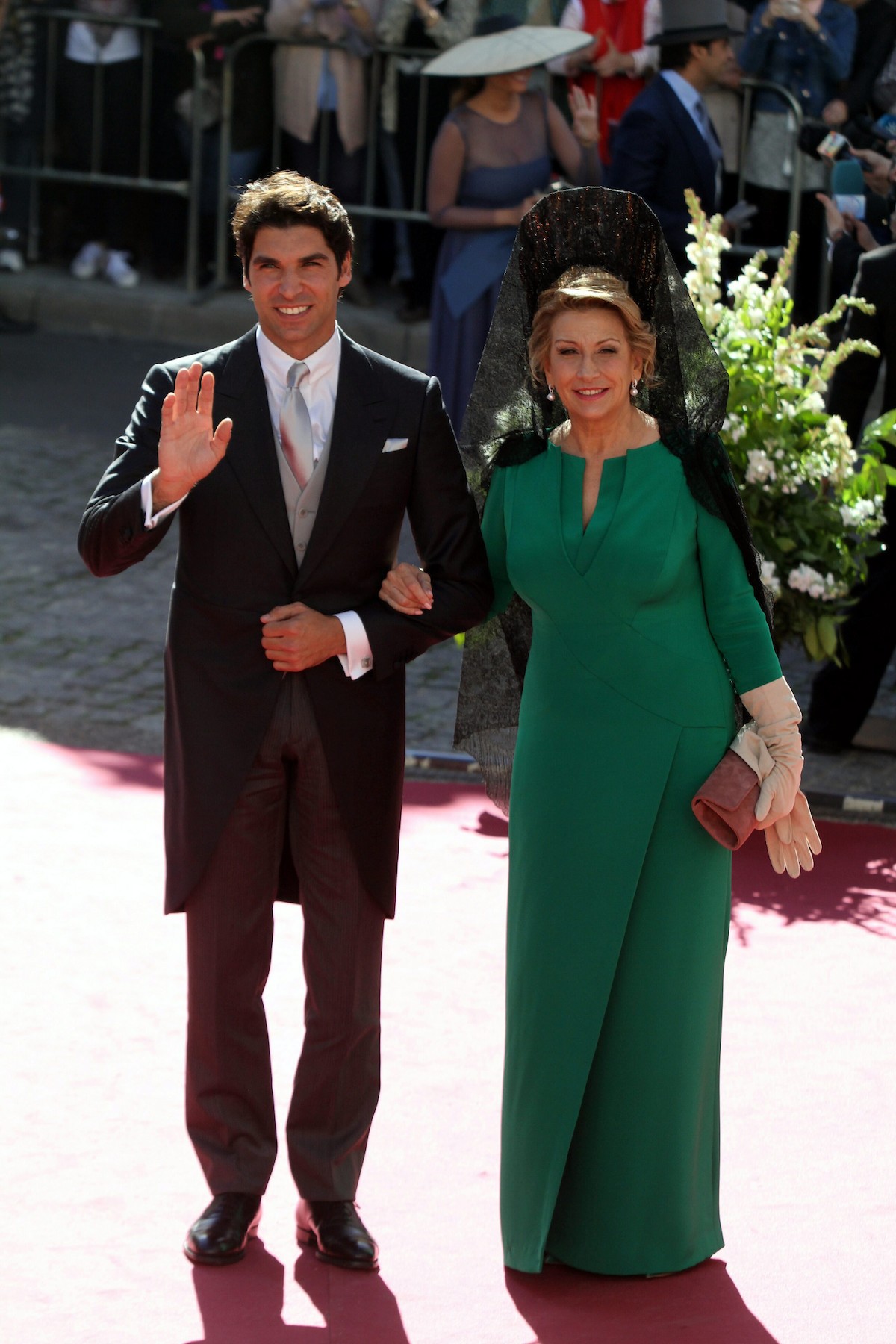 El novio llegó acompañado de la madre de Eva, quien llevó mantilla negra y un sencillo vestido de color verde.
