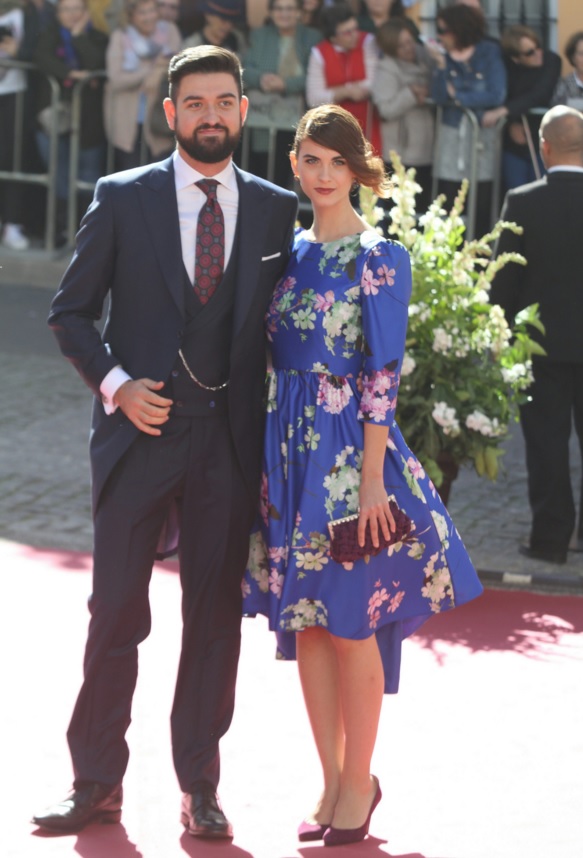 La exmujer de David Bisbal prefierió el azul marino y un vestido muy corto con un tocado de color marrón.