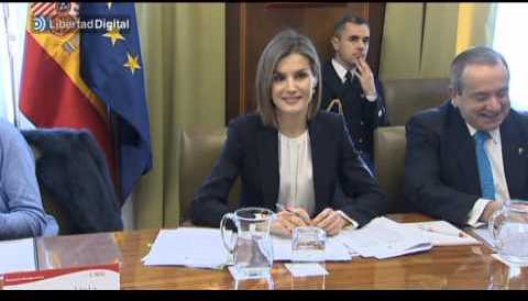 Letizia acudió al CSIC con un look muy al estilo working girl, compuesto por un traje negro, con camisa blanca, zapatos de tacón y un clutch rectangular.