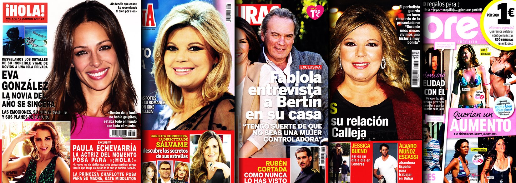 Portadas de las revistas Hola, Semana, Lecturas, Diez Minutos y Cuore.