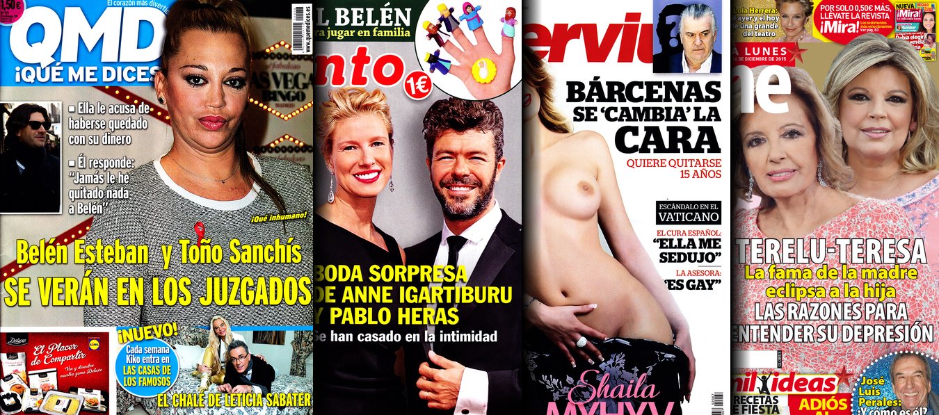Portadas de las revistas QMD, Pronto, Interviú y Dime.