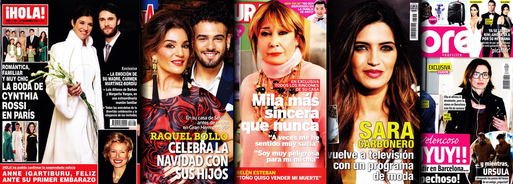 Portadas de las revistas Hola, Semana, Lecturas, Diez Minutos y Cuore.