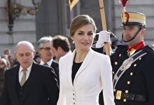 Escogió un vestido nuevo en negro de seda con bordados Richelieu en hilo negro. Lo combinó con una blazer blanca.