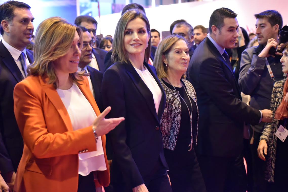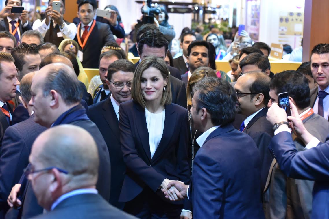 La Reina Letizia ha inaugurado Fitur 2016 con una visita durante la que ha concentrado el recorrido autonómico en los espacios de Andalucía y Madrid y el internacional en los pabellones de Corea, China, Japón y la India, donde ha expresado su interés por el yoga, una disciplina que practica.