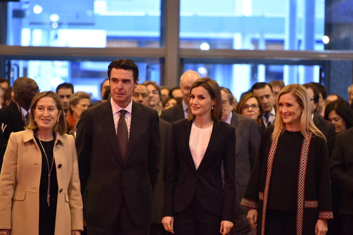 En el recorrido, los ministros ministros de Fomento, Ana Pastor, y de Industria, Fomento y Turismo, José Manuel Soria, acompañaron a la reina en todo momento.