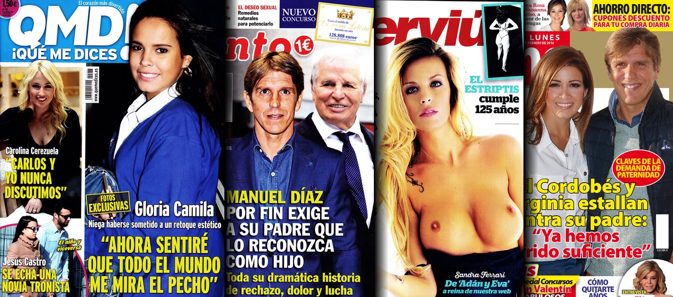 Portadas de las revistas QMD, Pronto, Interviú y Dime.