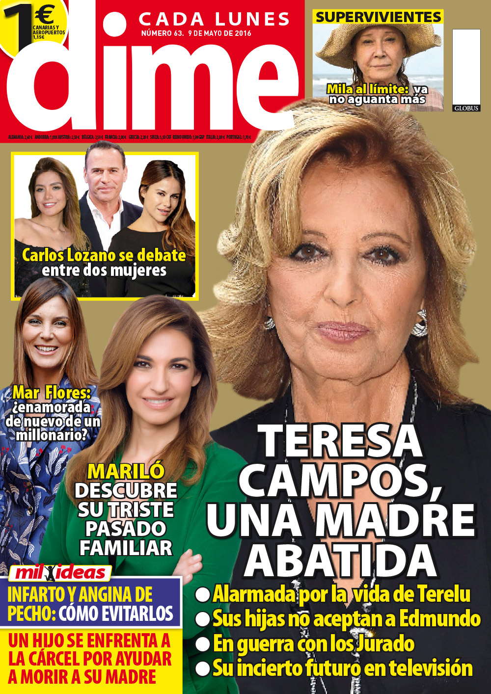 Portadas de las revistas QMD, Pronto, Interviú y Dime.