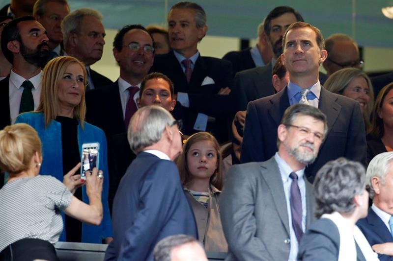 El rey Felipe VI ha acudido al Bernabéu con la infanta Sofía después de que fuera al Calderón con la infanta Leonor.