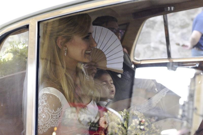 La modelo Alba Carrillo a su llegada a la ceremonia. Su enlace con Feliciano López, el 17 de julio de 2015 en Toledo.