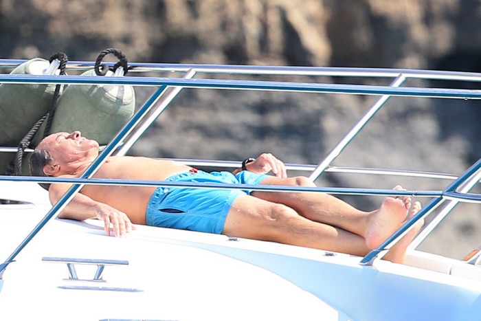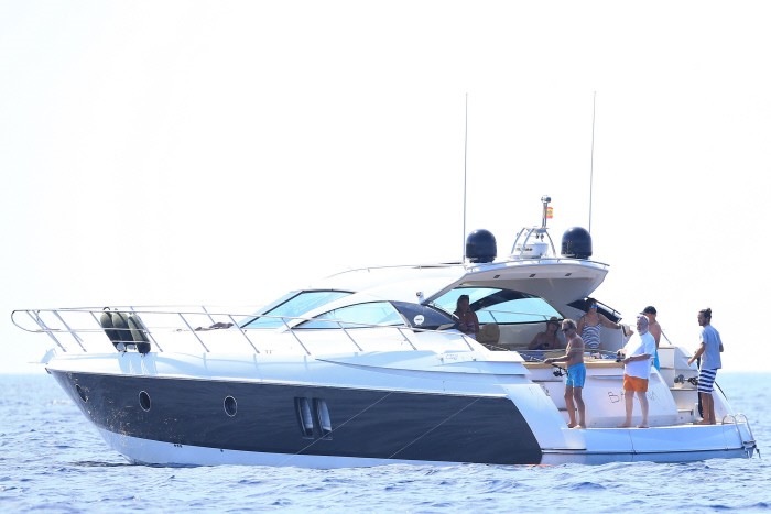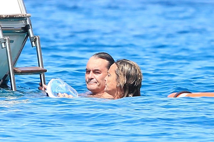 Mas y su esposa se dieron un chapuzón en un gran yate varado en aguas pitiusas.