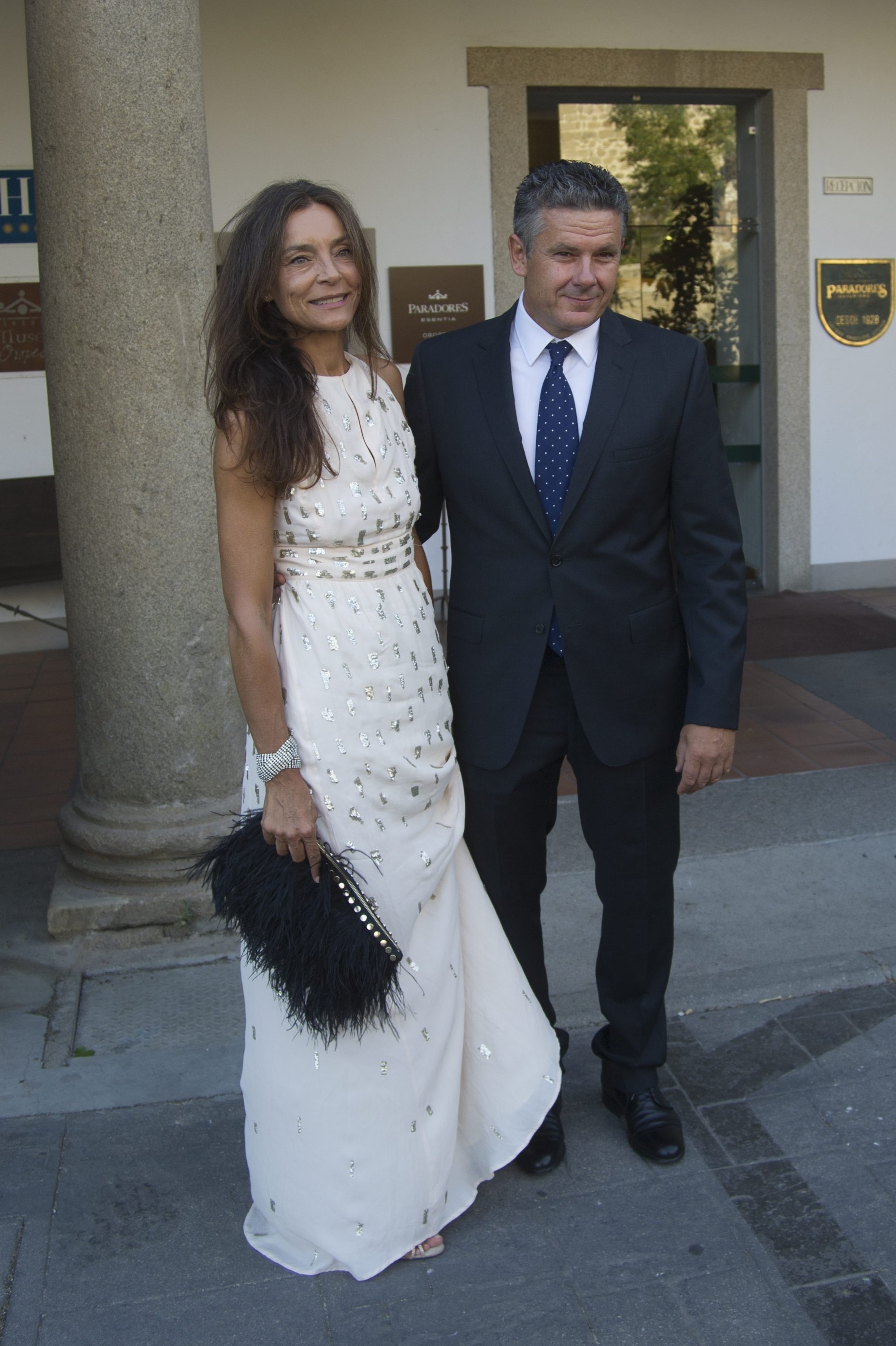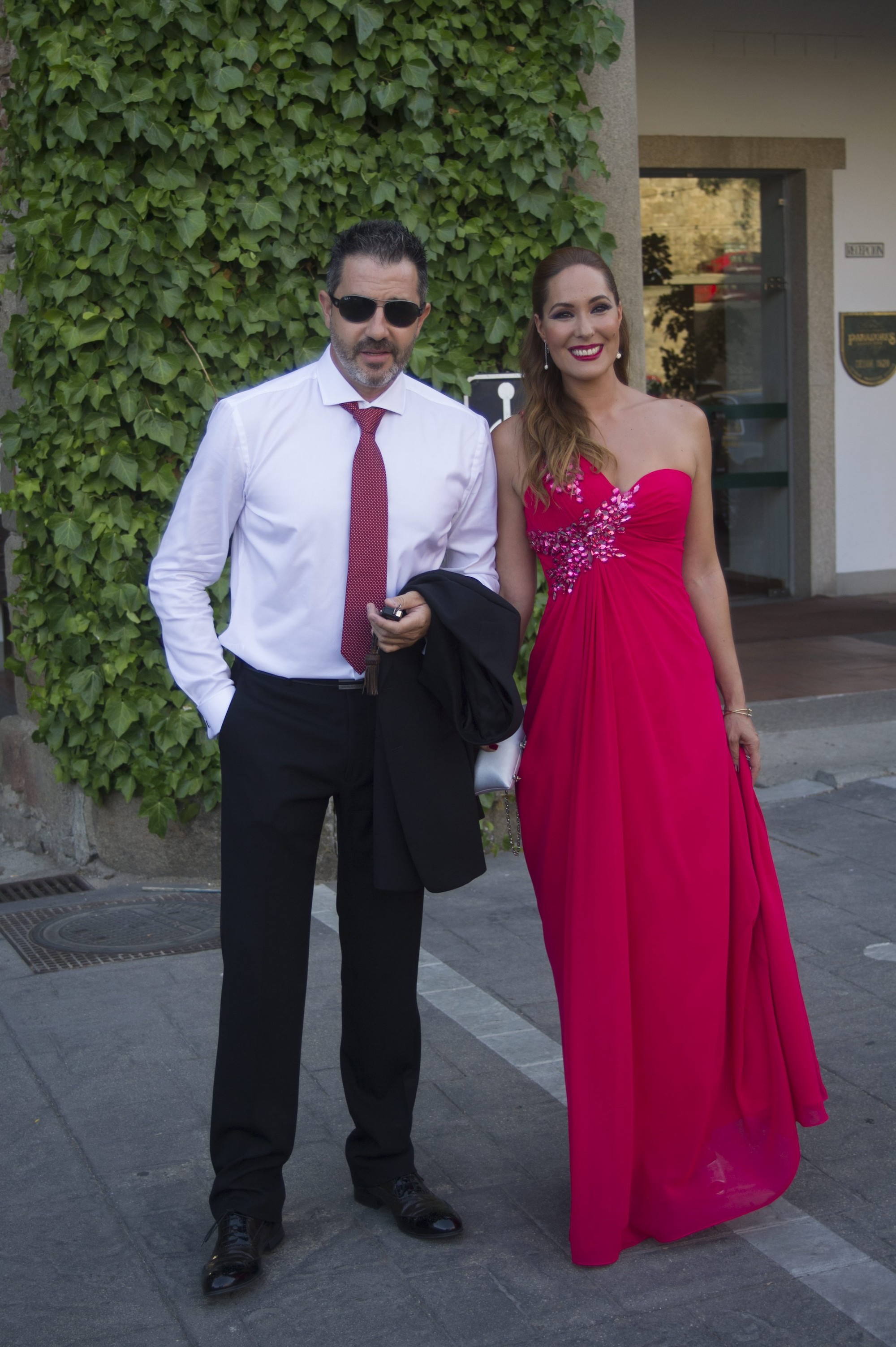 Chayo Mohedano, vestida con un elegante vestido escotado, y su marido, Andrés Fernández, también estuvieron en la finca toledana donde se celebra la boda de tres días.