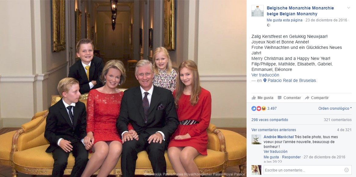 Felicitación navideña a través de Facebook donde aparecen el rey Felipe junto a su esposa Matilde y sus hijos Élisabeth, Gabriel y Emmanuel.