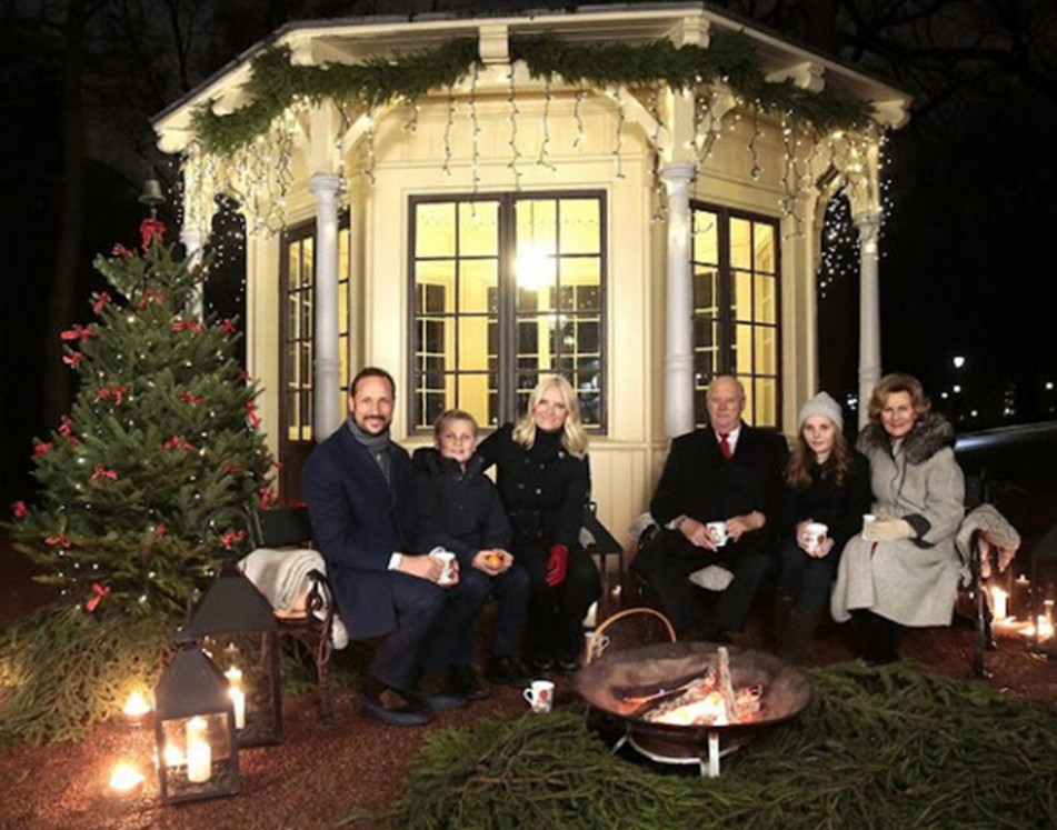 El rey Harald junto a su esposa Sonia junto a su heredero Haakon, su esposa Mette-Marit y sus hijos Ingrid y Sverre.