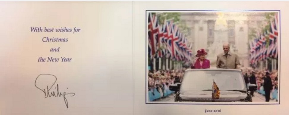 El duque de Edimburgo también ha mandado una felicitación con una instantánea junto a su esposa durante el desfile que se celebró en junio por el noventa cumpleaños de la reina.