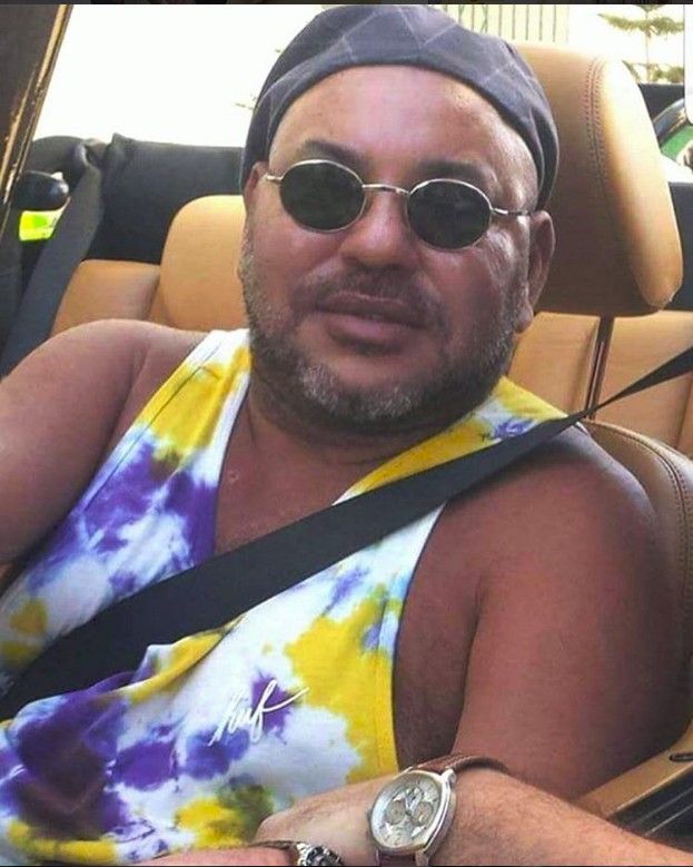 El Rey de Marruecos luce estilismos en los que incluye llamativas camisetas, gorras y gafas de sol al más puro estilo Kiko Rivera. Como toda una celebrity, no duda en posar con sus admiradores y subir las fotos en las redes sociales.