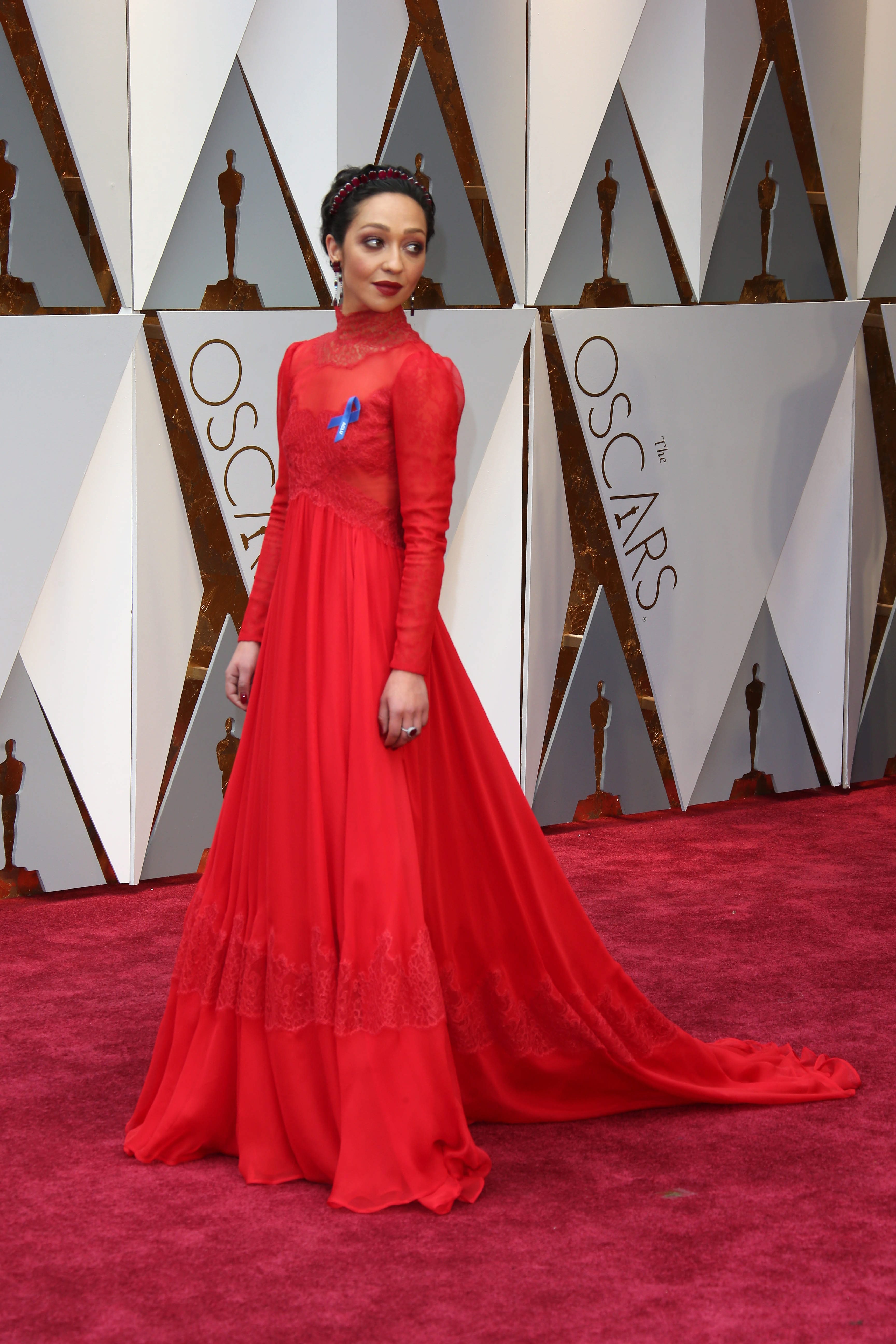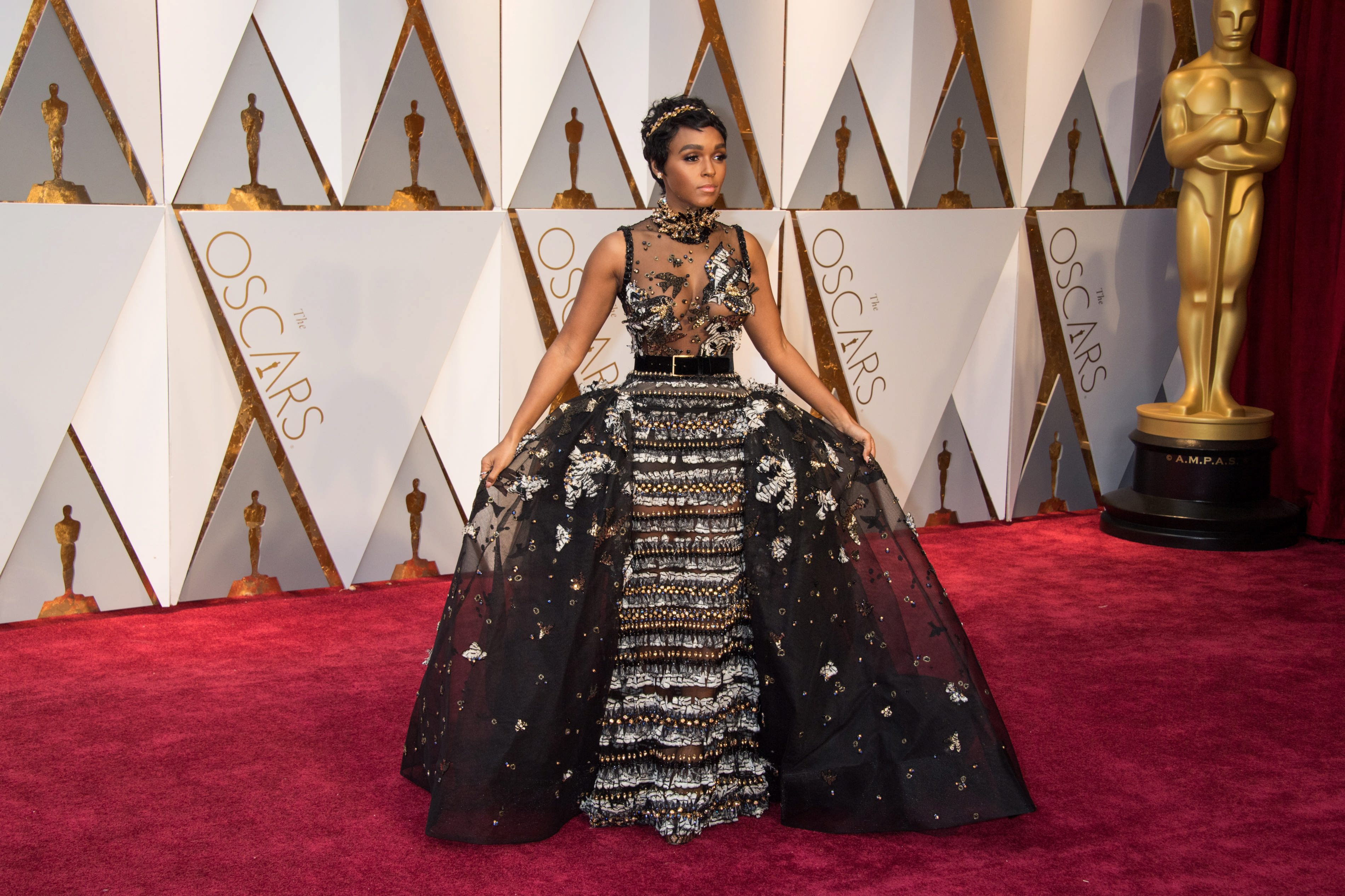 La ganadora del Oscar a la mejor actriz de reparto en 2016 sorprendió con un look más oscuro de lo que nos tiene acostumbrados. Algo sosa pero correcta, de Louis Vuitton.