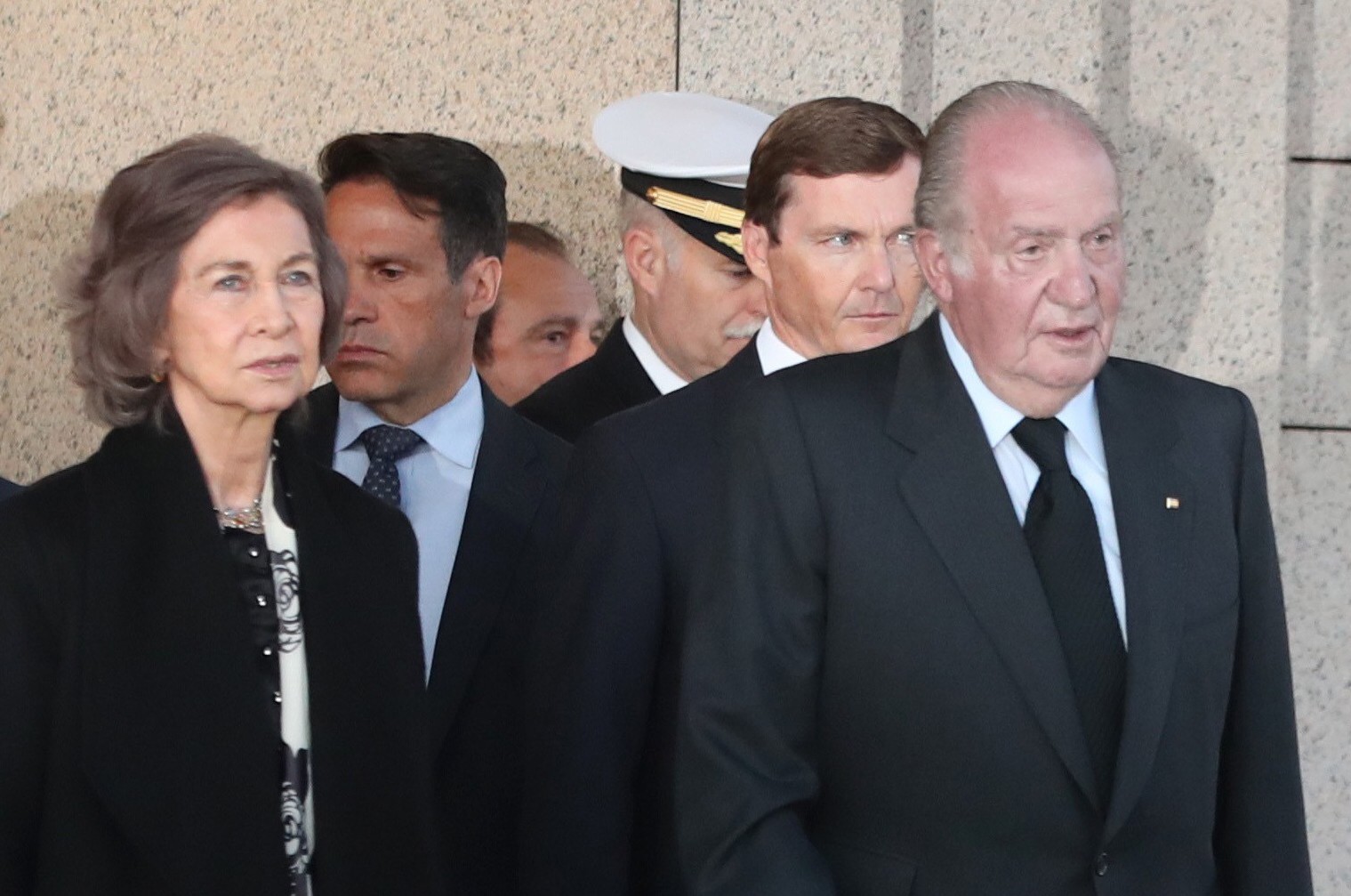 Juan Carlos y Sofía, de nuevo juntos en la despedida de Alicia de Borbón