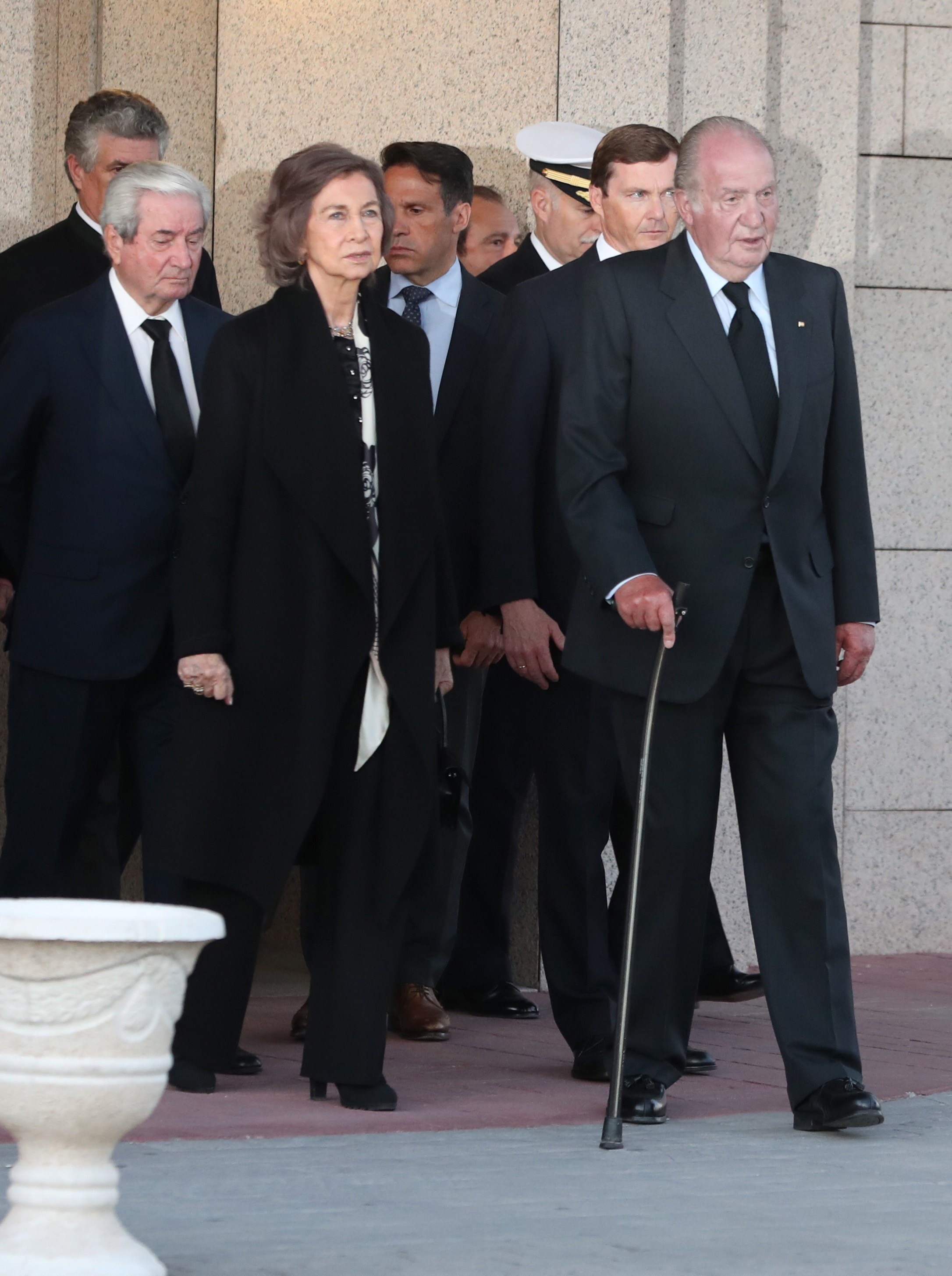 El rey Juan Carlos y la reina Sofía a su salida del Tanatorio de La Paz de Madrid.