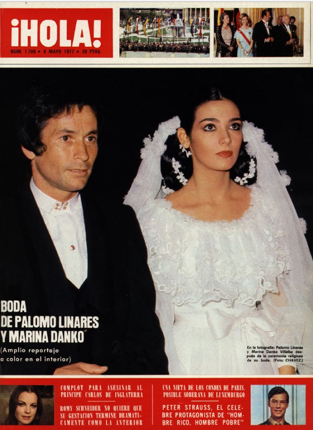 La ex modelo colombiana Marina Danko y torero Palomo Linares estuvieron casados entre 1977 y 2012. La ceremonia religiosa se celebró en la madrileña iglesia de Los Jerónimos el 26 de abril de 1977, pero ya se habían conocido siete años antes cuando ella veraneaba con sus padres en Palma de Mallorca.
