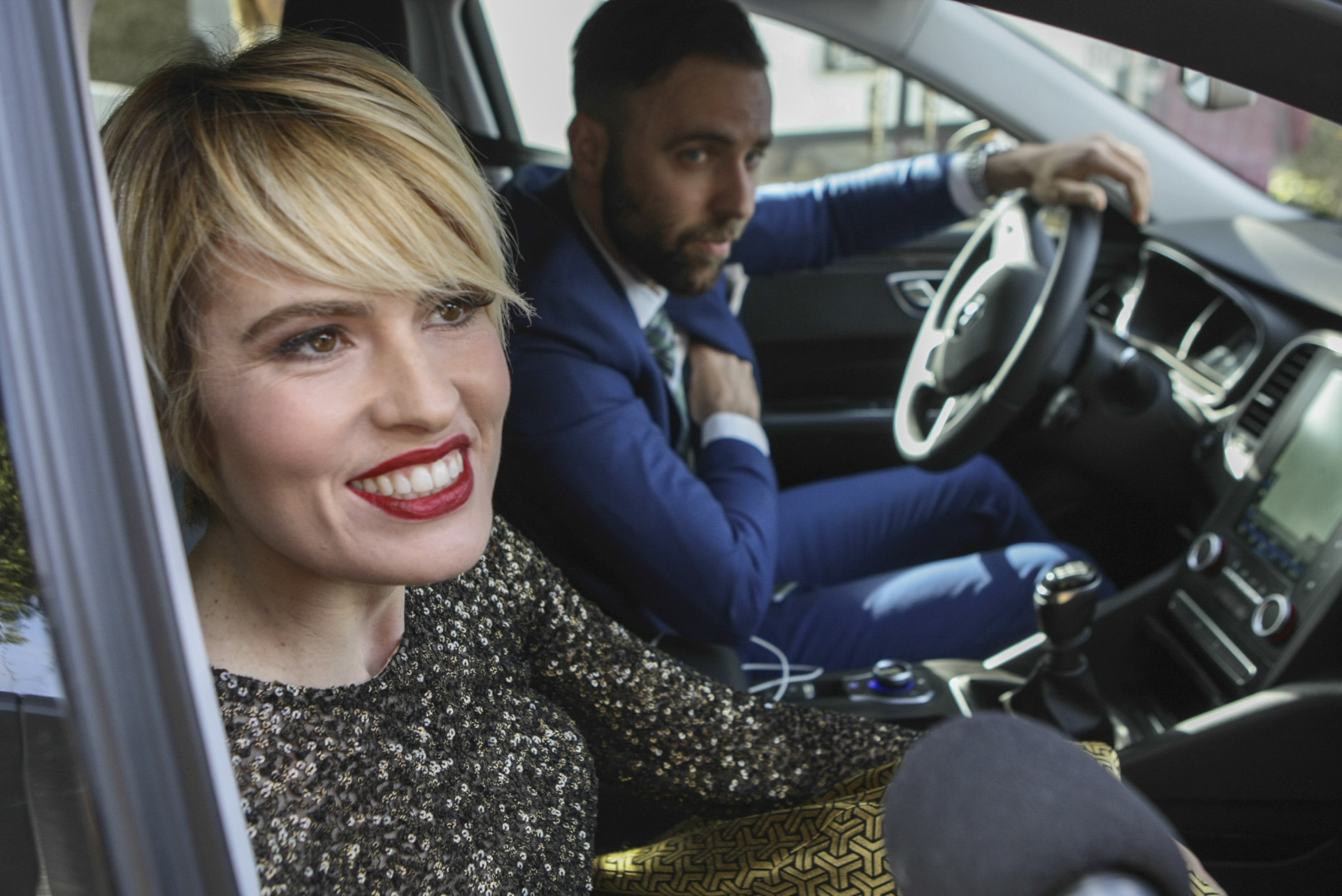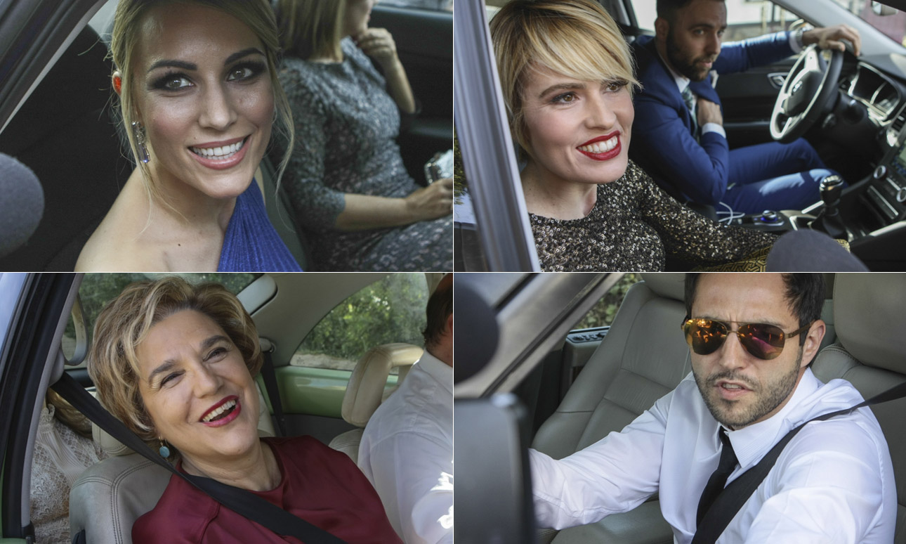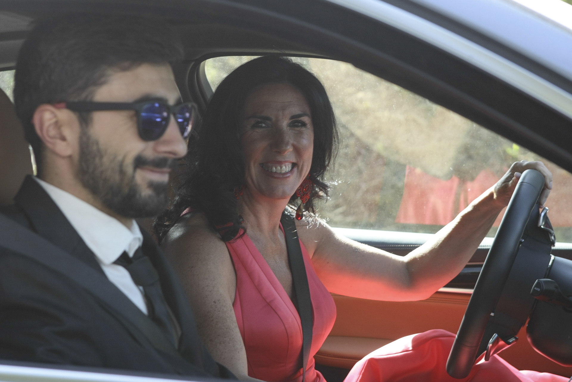 La televisiva Adriana Abenia, a su llegada a la boda de Risto y Laura en la finca de Mas Cabanyes, en Argentona.