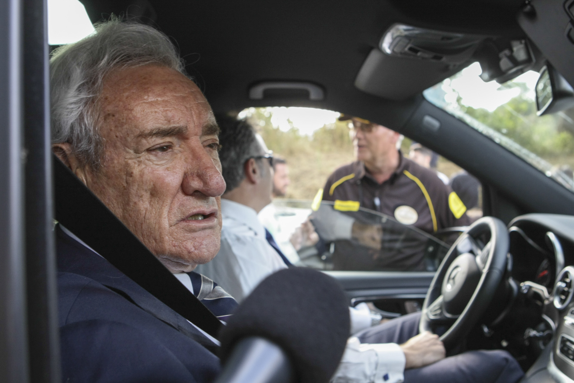 Es el caso también de Pilar Rahola, muy feliz en la entrada de la finca.