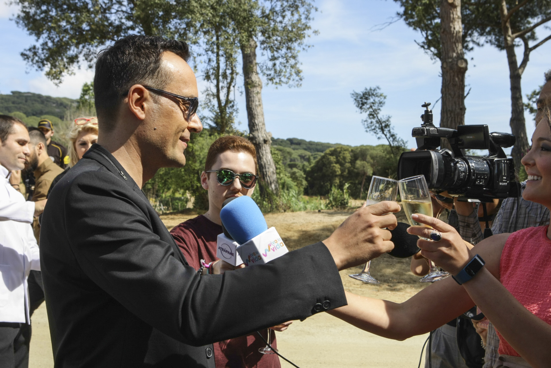 Mejide tuvo el detalle de salir a brindar con la prensa que se encontraba apostada a la salida de la finca catalana.