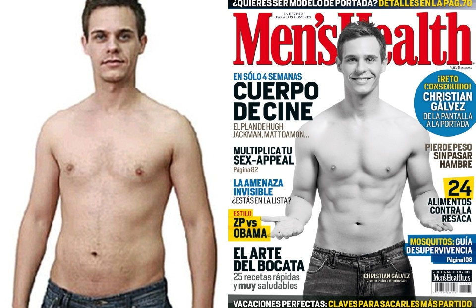 En el año 2008, el presentador Pablo Motos aceptó el reto de la revista Men´s Health. Durante unos meses, se sometió a un estricto plan de ejercicios y dieta con el que consiguió un cuerpo fibrado que lució en la portada de la publicación.