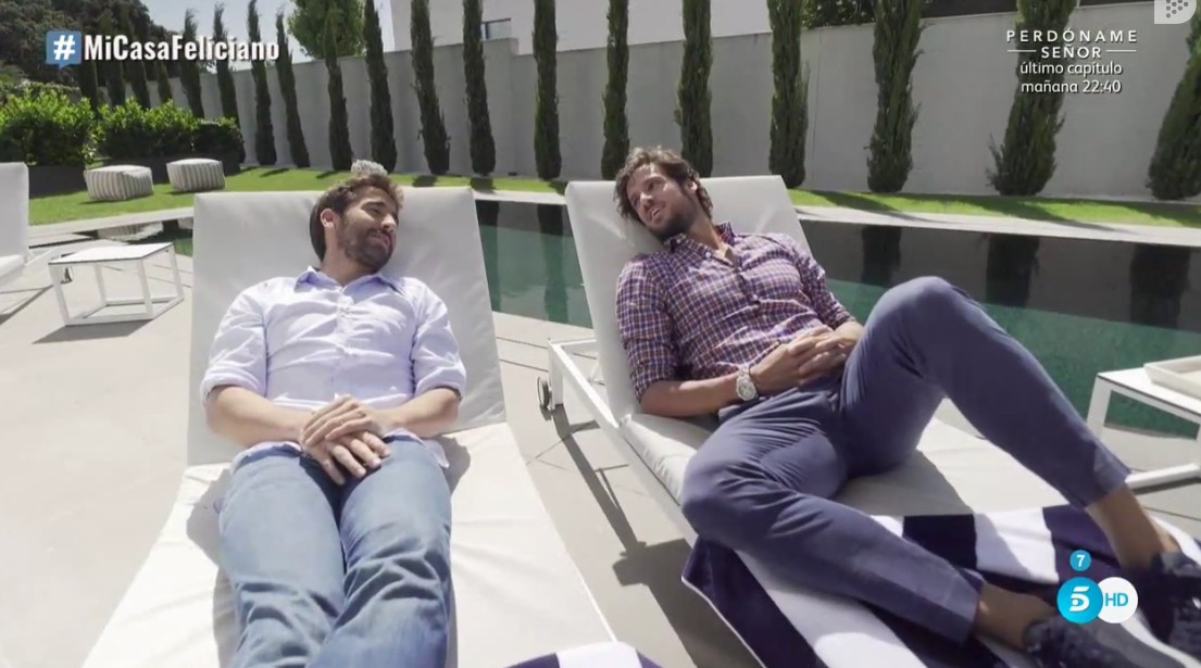 Feliciano y su amigo el tenista Marc López de confidencias en el jardín.