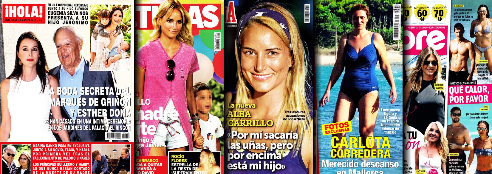 Portadas de las revistas Hola, Semana, Lecturas, Diez Minutos y Cuore